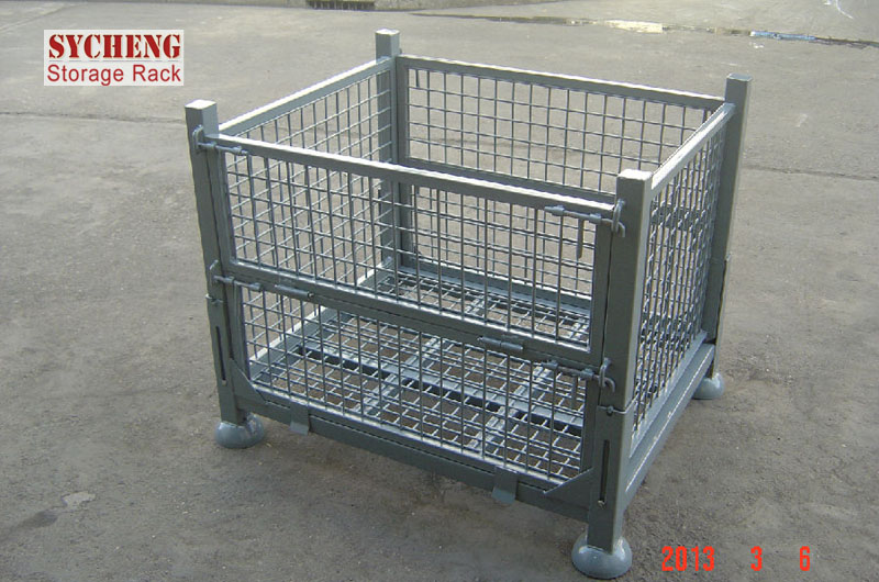 倉儲籠常用的有三種:一種是帶輪倉儲籠用來周轉用的,二種是帶腳倉儲籠可以堆起可以上架,三種是帶輪帶腳的倉儲籠可以兩用。